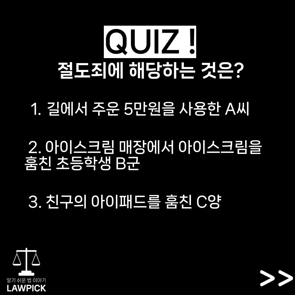 즉, 절도죄는 물건을 마음먹고 훔쳤을 때 성립됩니다.